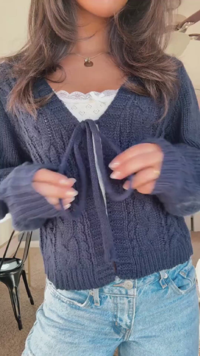 Le trecce sono uniformi e danno un effetto molto ricercato. Navy versatile con tutto.