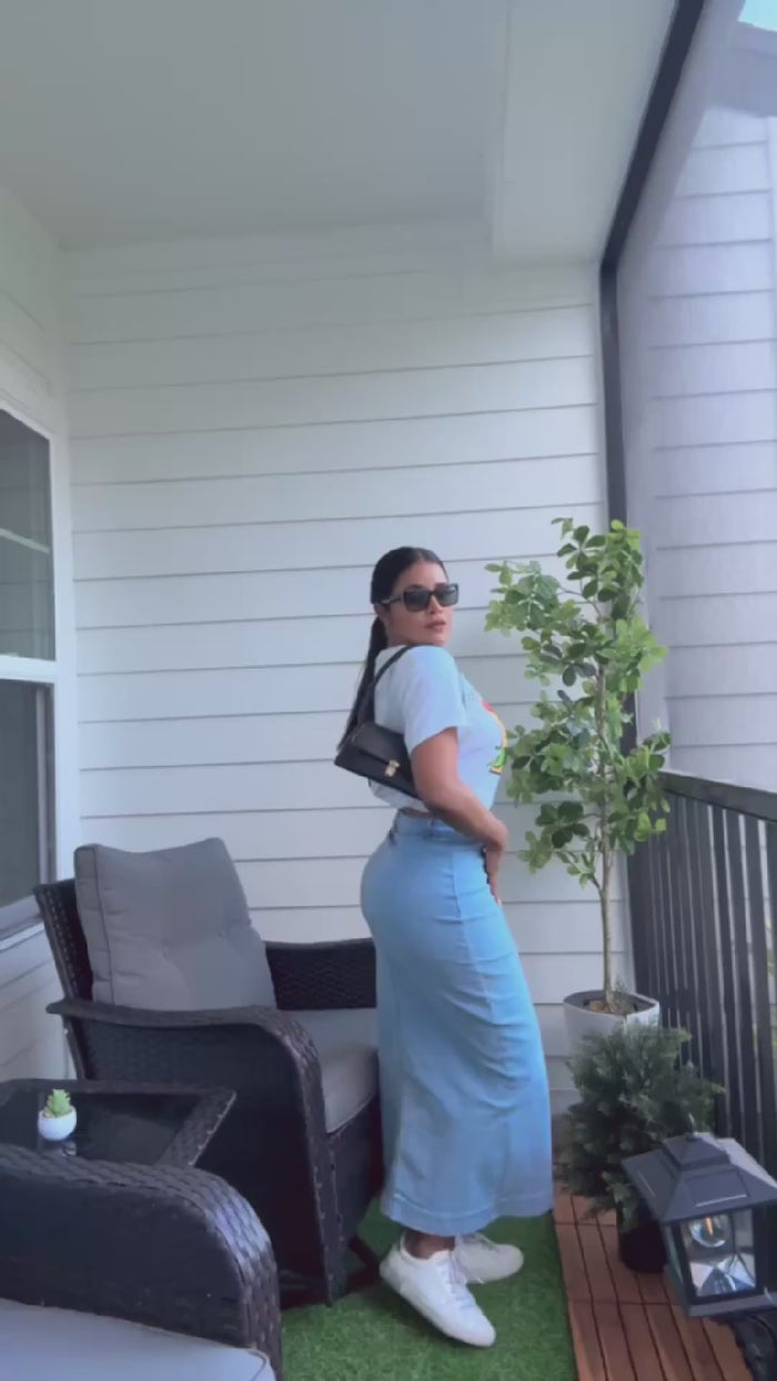 Questa gonna longuette in denim unisce la praticità del cotone al design raffinato di uno spacco frontale con bottoni decorativi. Perfetta per look da giorno con un twist deciso, da indossare con top minimal, sandali a tacco o sneakers. Linee pulite, taglio a vita alta e silhouette svasata che valorizza la figura con naturalezza.