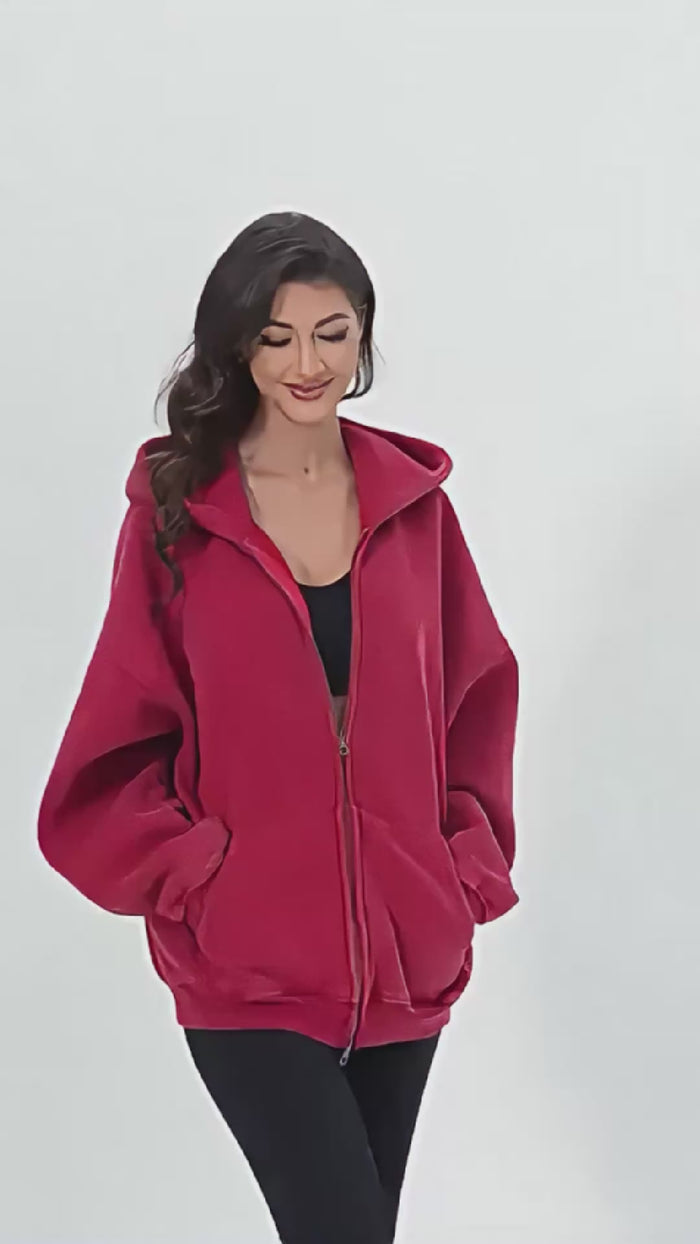 Questa felpa oversize con cappuccio e zip frontale unisce comfort e stile in un capo versatile. Realizzata in morbido tessuto misto poliestere, presenta una vestibilità ampia con spalle scese, cappuccio e pratica chiusura a zip. Le tasche frontali aggiungono funzionalità, mentre la gamma di colori disponibili consente di adattarla a ogni look casual.
