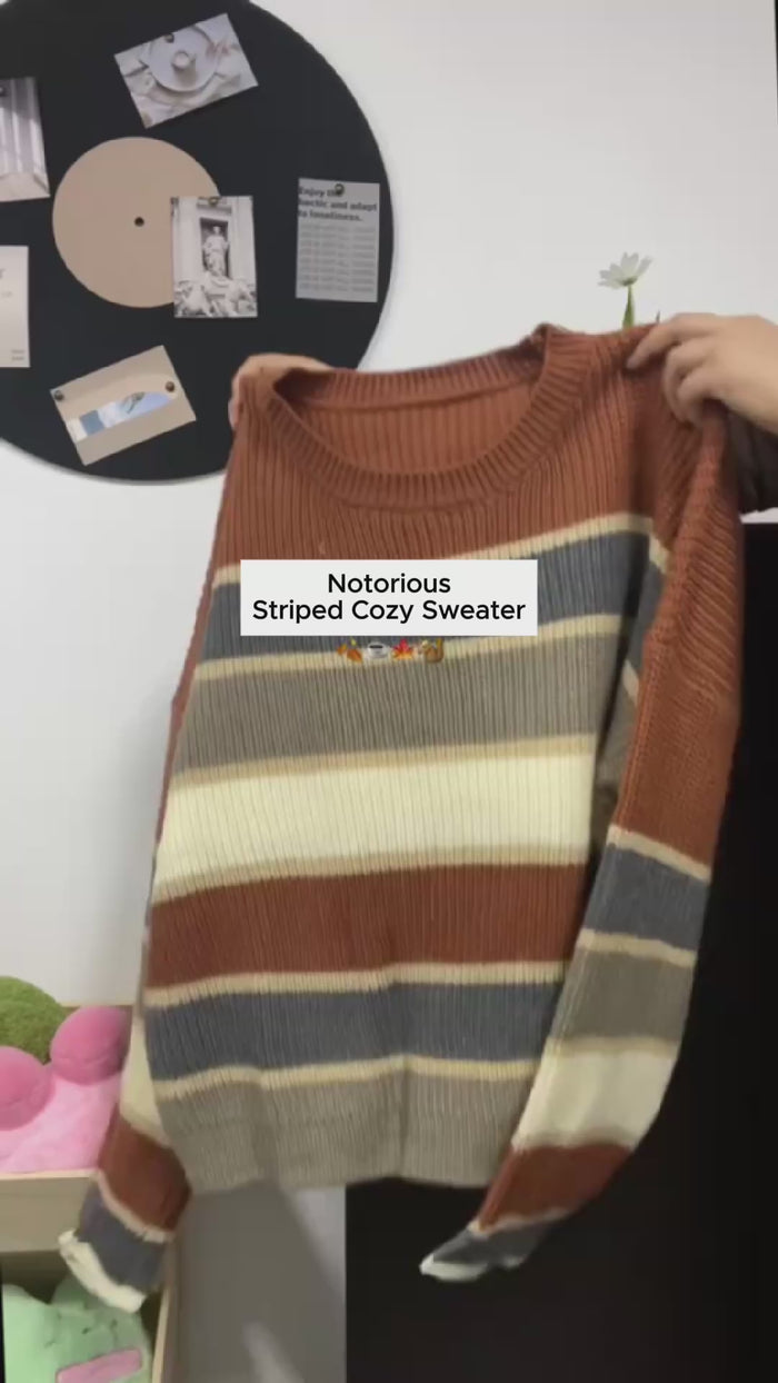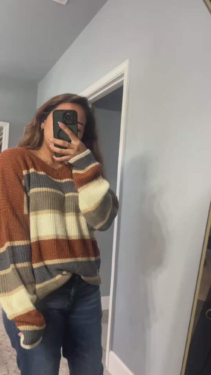Maglione casual a righe dallo stile rilassato e trendy. Il tessuto morbido in poliestere assicura comfort e vestibilità ampia, perfetta per look autunnali e invernali. Con scollo tondo e maniche lunghe, è un capo versatile che dona subito un tocco di stile effortless.